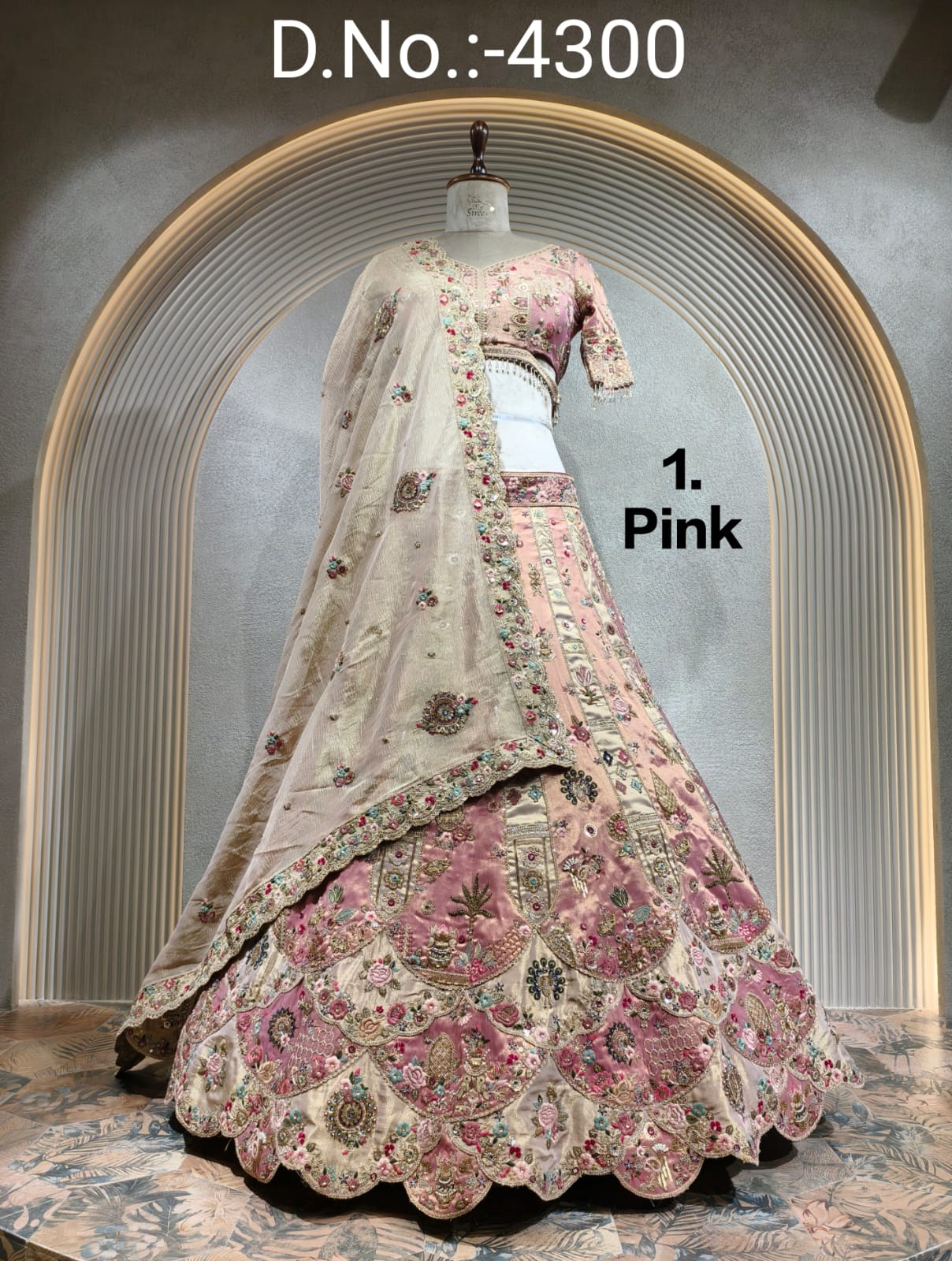 This exquisite Rani pink bridal lehenga is a stunning blend of tradition and elegance. Crafted with luxurious silk fabric, it features intricate golden zari work, delicate sequin embellishments, and elaborate floral motifs that enhance its regal charm. The lehenga is paired with a matching embroidered blouse and a gracefully adorned net dupatta with a detailed border, making it the perfect choice for a grand bridal look.
