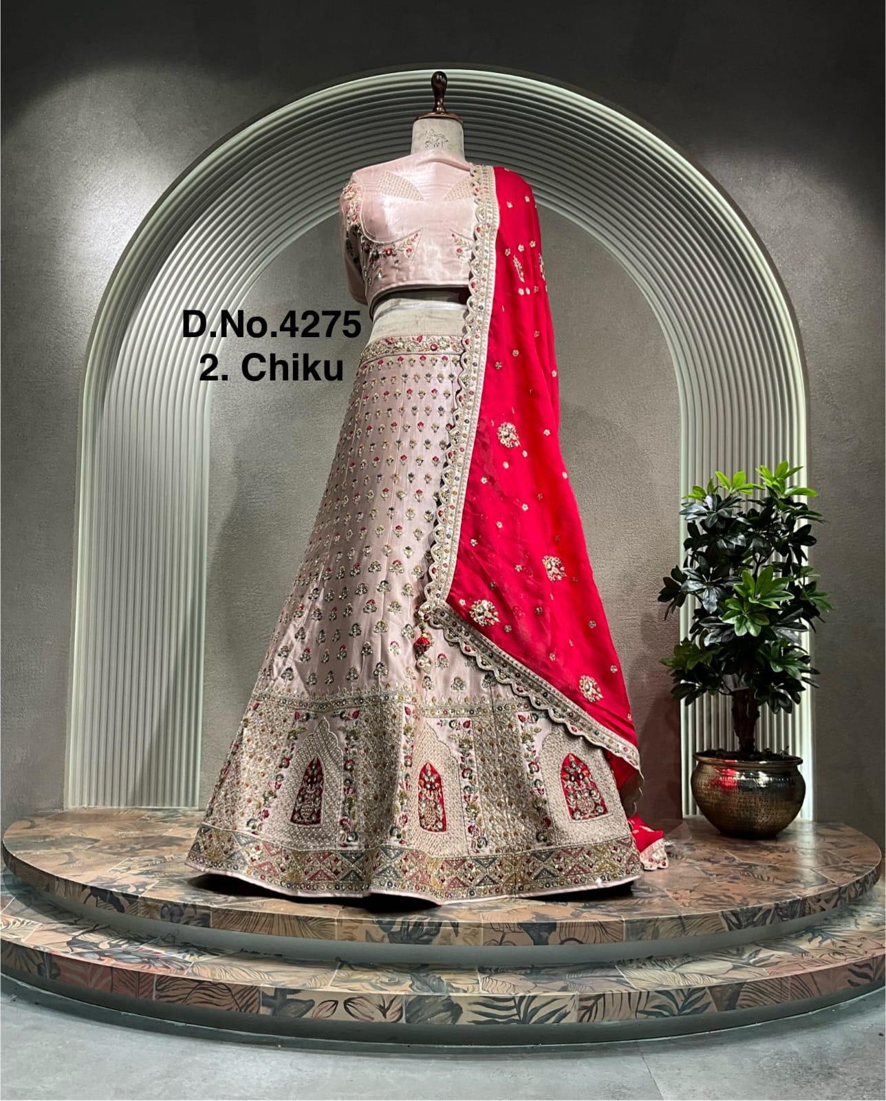 This stunning white lehenga is a masterpiece of heritage and craftsmanship, featuring intricate hand embroidery, mirror work, and traditional motifs that celebrate India’s rich culture. The unique artwork includes royal elephants, deer, floral patterns, and palace-inspired designs, making it a perfect choice for brides and grand occasions.