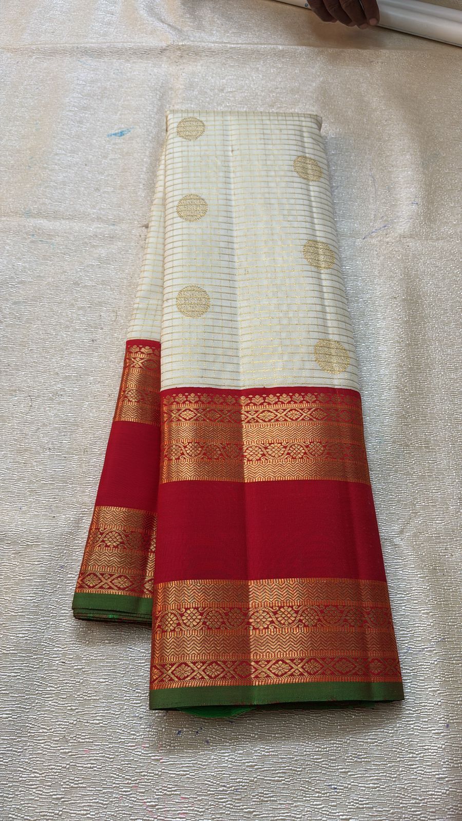Experience the timeless elegance of this off-white silk saree, a perfect blend of subtle sophistication and traditional craftsmanship. This saree features a creamy white hue, crafted from a luxurious silk blend that offers a smooth, rich texture and a graceful drape.