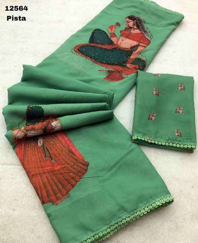 Pista Green Chiffon Kalamkari Doll Print Saree