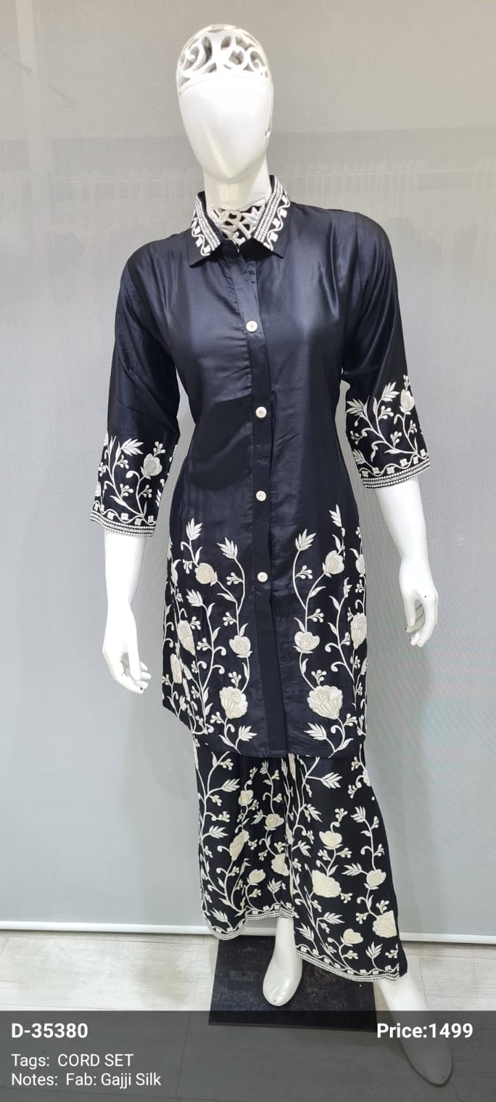 Introducing the D-35380 Gajji Silk Cord Set, a sophisticated and stylish ensemble perfect for a variety of occasions. This cord set features intricate embroidery on luxurious Gajji silk, adding a touch of elegance to your wardrobe.